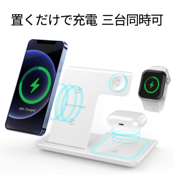3in1 ワイヤレス充電器 チャージャー iPhone Apple Watch AirPods アップルウォッチ スマホ 置くだけ充電 iPhone13 12 Airpods 3 2 Max Pro 8 7 SE 6 5 4 3