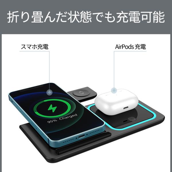 折り畳み可能、持ち運びや収納便利です。15Wの高速充電仕様。