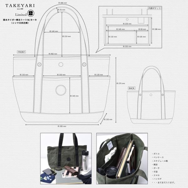 TAKEYARI タケヤリ 撥水タイガー帆布トートM カーキ(シンワ共同企画) キャンバス 武鑓 倉敷 帆布 WUT-008