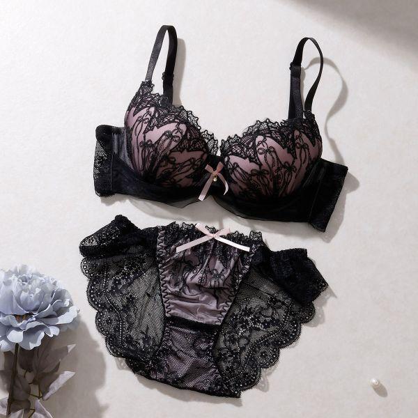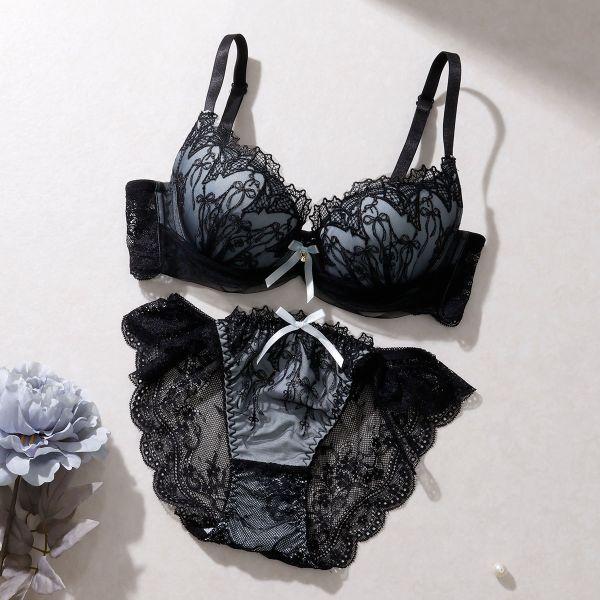 甘めドーリーなモチーフとブラックカラーが可愛いブラ&ショーツ