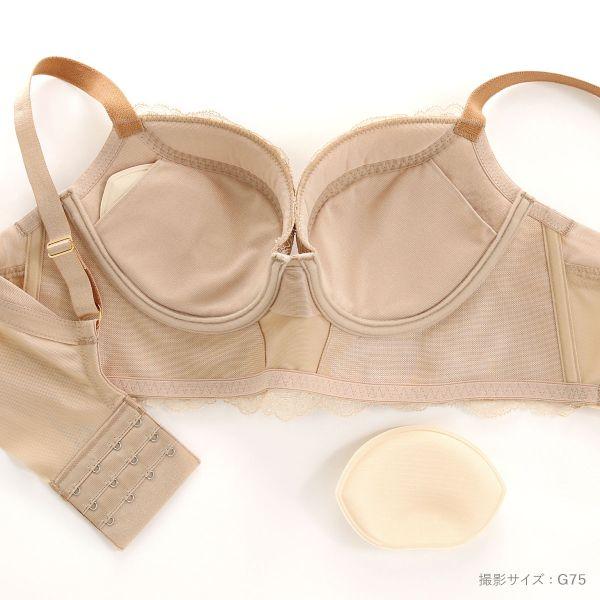 バスト位置を上げて上胸ふっくらボリュームアップ、脇すっきりシルエットをメイクするカップを採用しています。土台脇の伸びないシートで、安定感のあるしっかりとしたつけごこち。