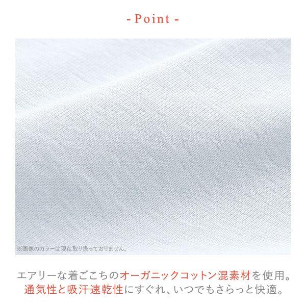 身生地には、薄く軽く、まるで素肌のようにエアリーな着ごこちのオーガニックコットン混素材を使用。通気性と吸汗速乾性に優れ、いつでもさらっと快適。抗菌防臭加工をほどこしているので、汗やムレが気になる季節も安心です。