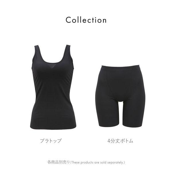 シェイプの秘密は身生地全体に使用した、するんとなめらかな肌あたりのパワースムース素材。タテヨコにやわらかく伸縮する、キツすぎずユルすぎないほどよい締め感で、自分では見えない背中や気になるポッコリお腹、ウエストまわりをすっきり押さえてスムージング。