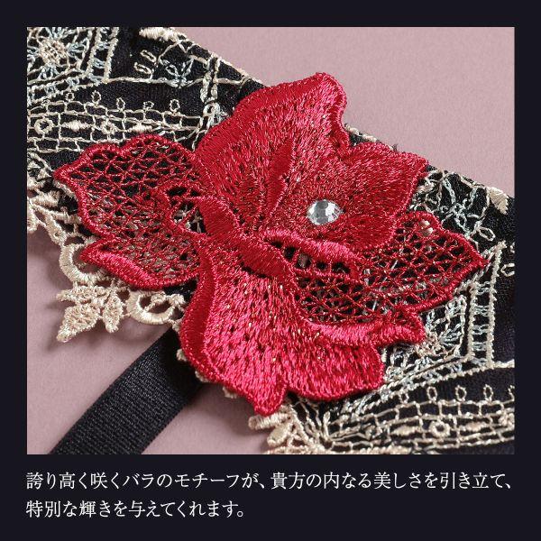 透け感のある軽やかな素材と、誇り高く咲くバラのモチーフが、あなたの内なる美しさを引き立て、特別な輝きを与えてくれます。