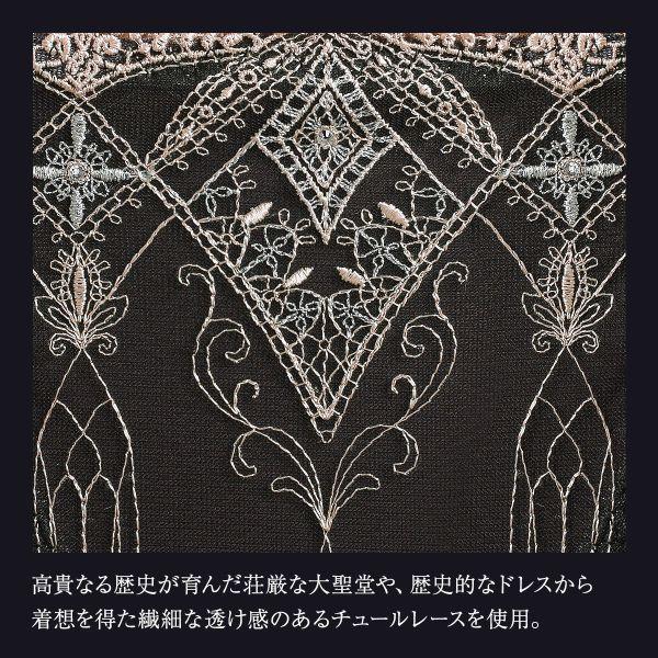 高貴なる歴史が育んだ荘厳な大聖堂や歴史的なドレスから着想を得た繊細なチュールレースが、圧倒的な存在感を放ちます。