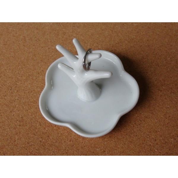 梅型リングホルダー リングホルダー 指輪かけ 白 ポーセリンアート チャイナペイント 絵付け 陶器 美濃焼