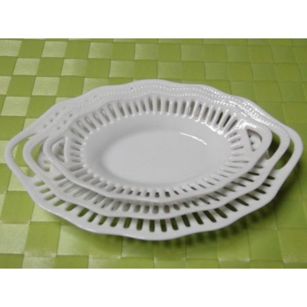 レースオーバルボウルL16cm 楕円 ボウル オーバルボウル 小鉢 カフェ食器 透かし皿 ポーセリンアート 絵付け