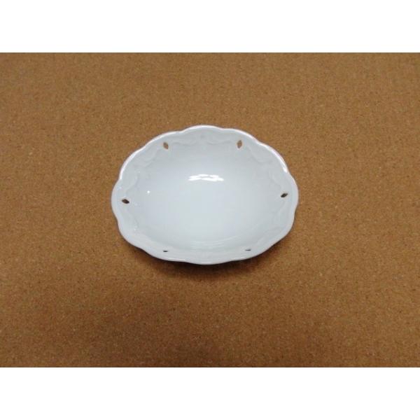 模様入り石鹸入れ(透かし入り) ソープディッシュ 石鹸置き 陶器 白 白磁 ポーセリンアート ポーセラーツ