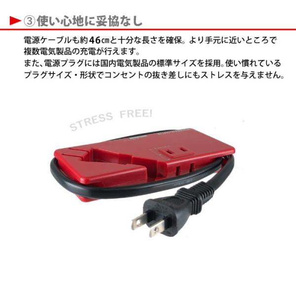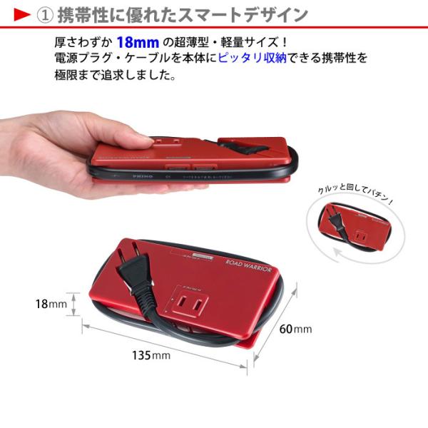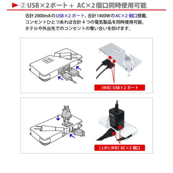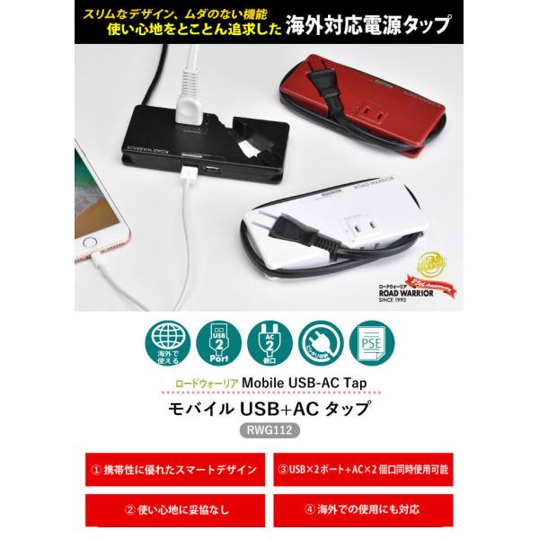 RWG112 USB 電源タップ モバイルUSB+ACタップ 2ポート AC 1ポート 充電 コンセント タップ 急速充電 急速 充電器 軽量 スリム コンパクト ケーブル