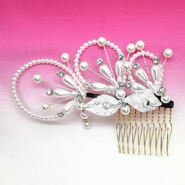 髪飾り パール コーム 日本製 着物 留袖 和装 訪問着 結婚式 レディース 送料無料 美を結ぶ むすびの MUSUBINO 18420