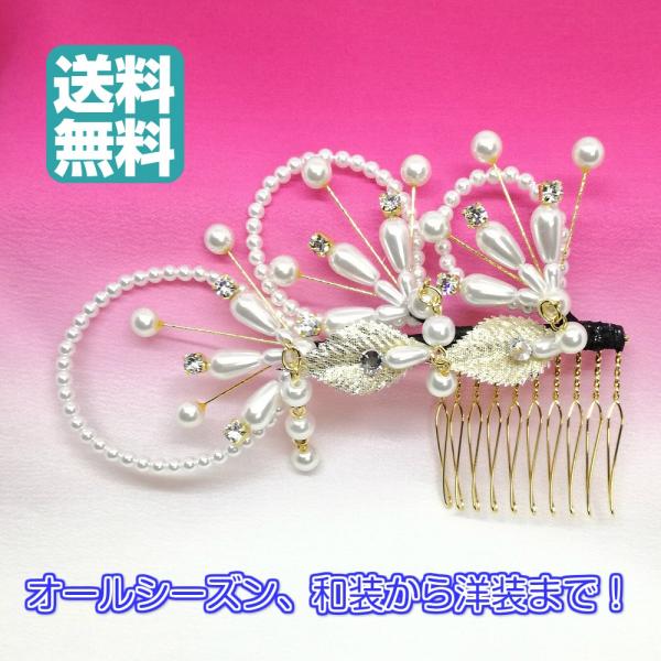 髪飾り パール コーム 日本製 着物 留袖 和装 訪問着 結婚式 レディース 送料無料 美を結ぶ むすびの MUSUBINO 18420