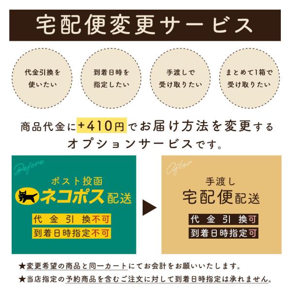 通常のお買い物 【+ 410円】で、お届け形態をネコポス(ポスト投函)から「宅配便」に変更します!