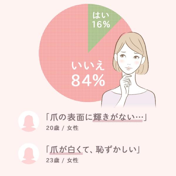 ツヤは長い場合は2週間持続。ジェルネイル や マニキュア で傷んだ爪の休息中にも◎