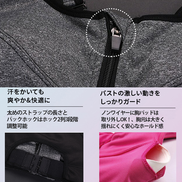 スポーツブラ 揺れない ランニング スポブラ ホックタイプ レディース ノンワイヤー ブラ パッド しっかりサポート 吸汗速乾 フィットネス ヨガ 通気性 前開き