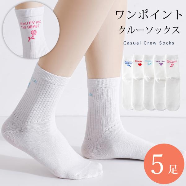 ワンポイント 靴下 5足 セット 23cm〜25cm レディース クルーソックス オフホワイト 白 23 24 25 通年 送料無料