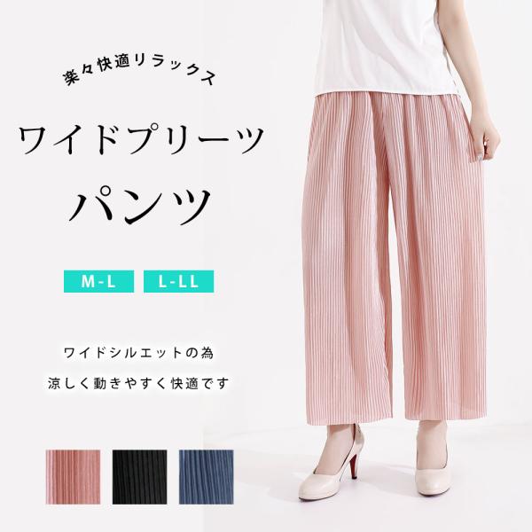 さらさら ワイドプリーツパンツ 10分丈 涼しい 春夏 夏用 ルームウェア レディース リラックスパンツ 送料無料