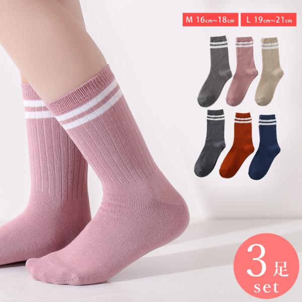 靴下 キッズ ソックス 3足 セット ロークルー丈 子供 スクールソックス 無地 白 黒 通学 通園 幼稚園 小学校 綿混 13cm〜21cm 通年 送料無料