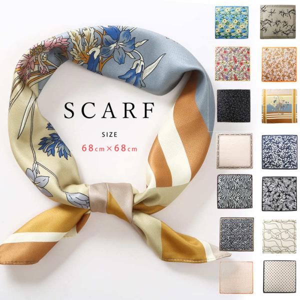 スカーフ <全14種類> 68cm ストール マフラー バッグ リボン 柄 カジュアル 女の子 レディース ゼブラ 花柄 ドット柄 かわいい ギフト 送料無料