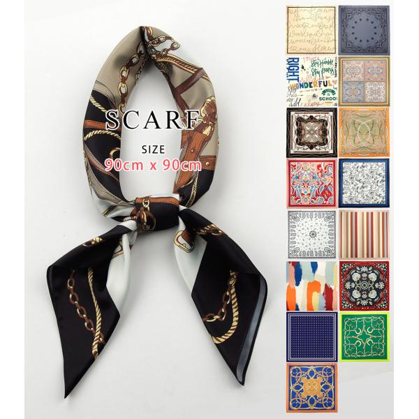 スカーフ <全15種類> 90cm ストール マフラー バッグ リボン 柄 カジュアル 女の子 レディースファッション 花柄 無地 かわいい ギフト 人気 新作 送料無料