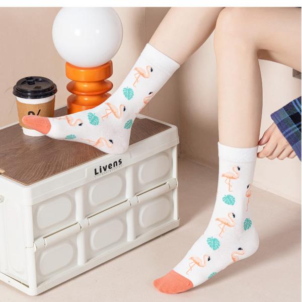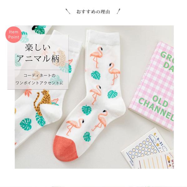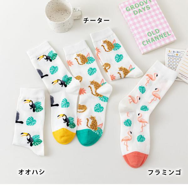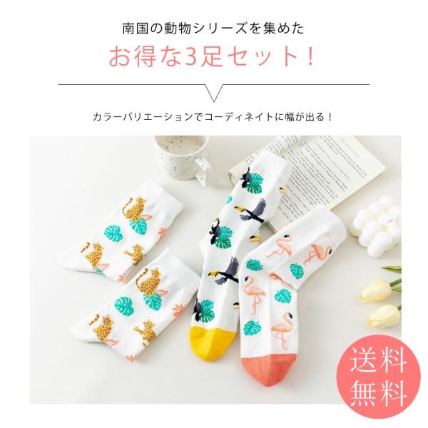 フラミンゴ チーター オオハシ クルーソックス 靴下 3足 セット レディース 23cm〜25cm ソックス カジュアル 23 24 25 通年 送料無料
