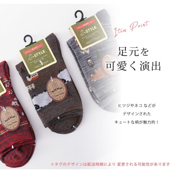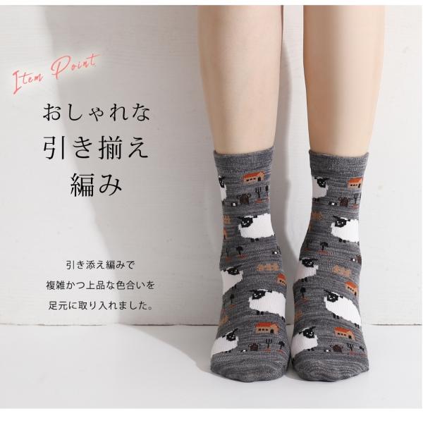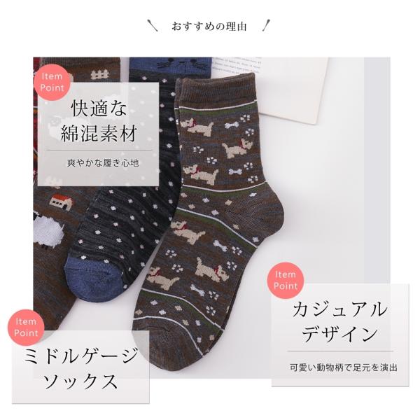 靴下 レディース クルーソックス 引き揃え 4足 セット 23cm〜25cm ソックス 動物柄 ドット ボーダー カジュアル 23 24 25 通年