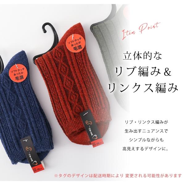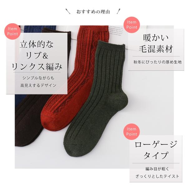 リブ リンクス編み ソックス 毛混 あったか 暖か レディース 靴下 可愛い 4足 セット 23cm〜25cm アソートセット 23 24 25 秋冬 送料無料