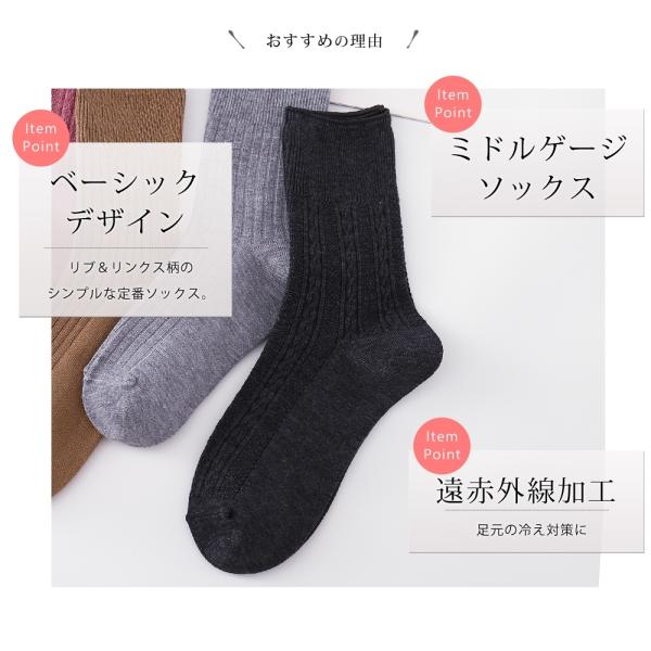 遠赤外線加工 あったか 靴下 4足 セット 22cm〜24cm レディース ソックス リブ リンクス 黒 ブラック 暖か 22 23 24 ベーシック 秋冬