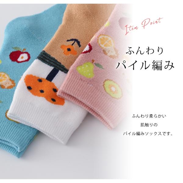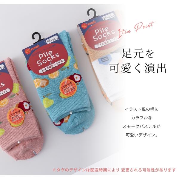 あったか パイル編み 靴下 4足 セット 22cm〜24cm レディース クルーソックス 可愛い イラスト風柄 22 23 24 秋冬