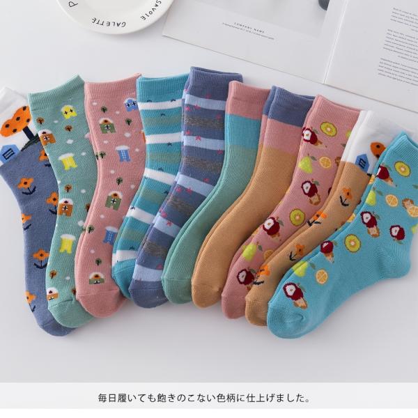 レディース クルーソックス 引き揃え 靴下 10足 セット 23cm〜25cm カラフル ドット ボーダー カジュアル 23 24 25 夏用 春夏 送料無料