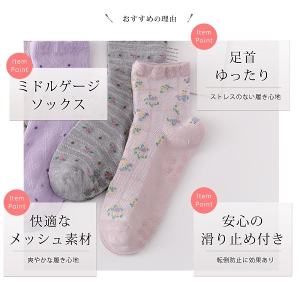 花柄やドット柄など飾らないデザインのカジュアルソックス。