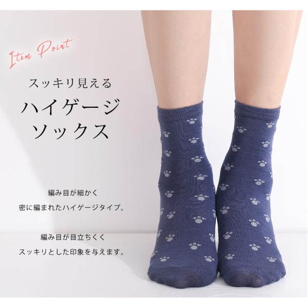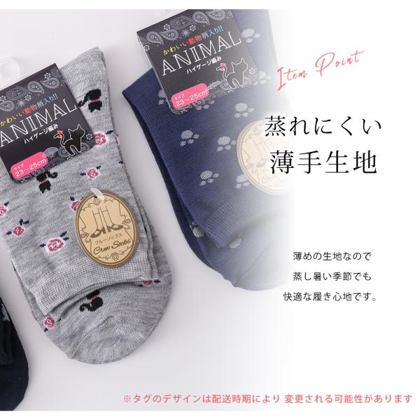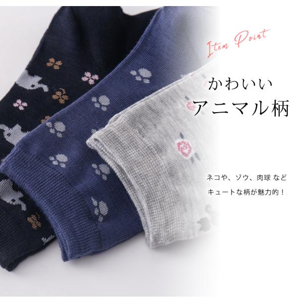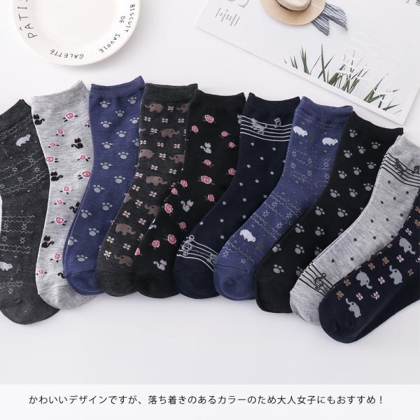 綿混 カジュアル 靴下 5足 セット 23cm〜25cm レディース クルーソックス 動物柄 ネコ柄 グレー ブラック ネイビー 23 24 25 夏用 春夏 送料無料