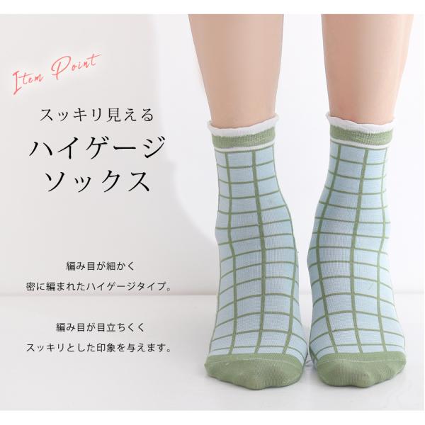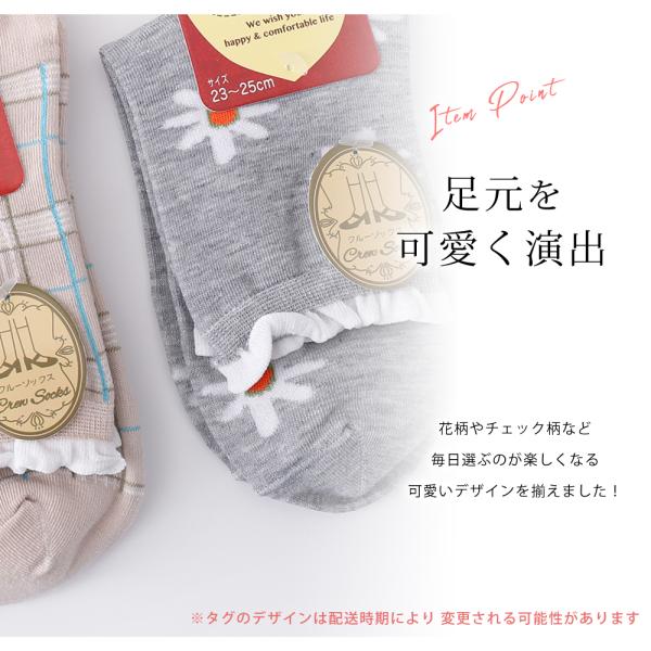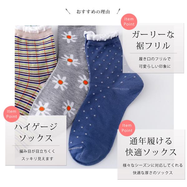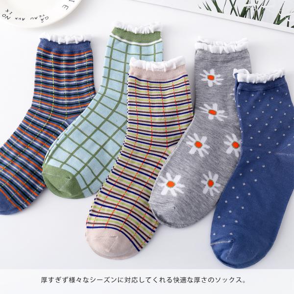 靴下 裾フリル カジュアル 4足 セット 23cm〜25cm レディース クルーソックス ソックス 花柄 チェック柄 ドット柄 水玉 23 24 25 通年