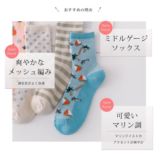 メッシュ編み 靴下 4足 セット 23cm〜25cm レディース クルーソックス マリン調 カジュアル 23 24 25 通年 送料無料