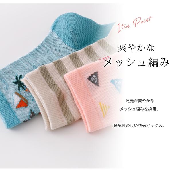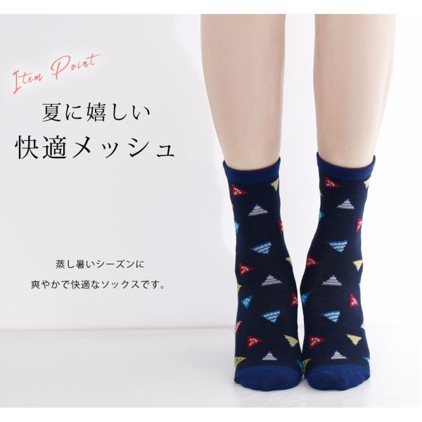 足元が爽やかなメッシュ編みを採用。通気性の良い快適ソックス。