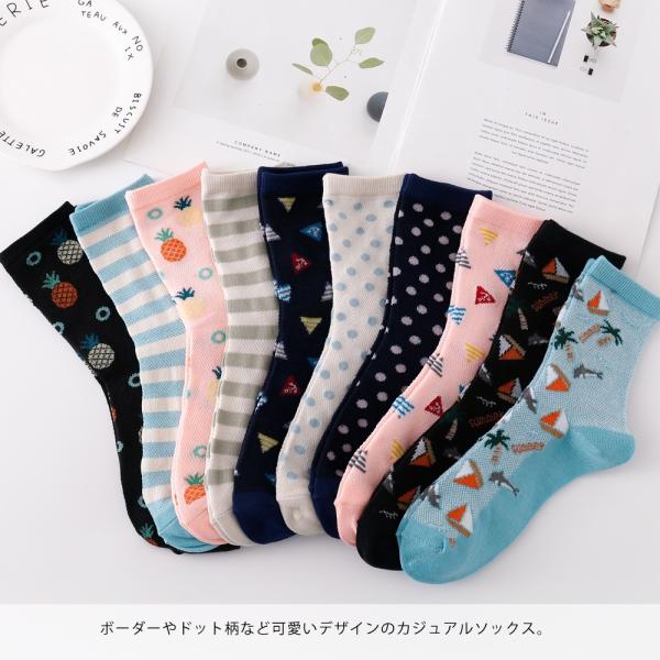 ボーダーやドット柄など飾らないデザインのカジュアルソックス。