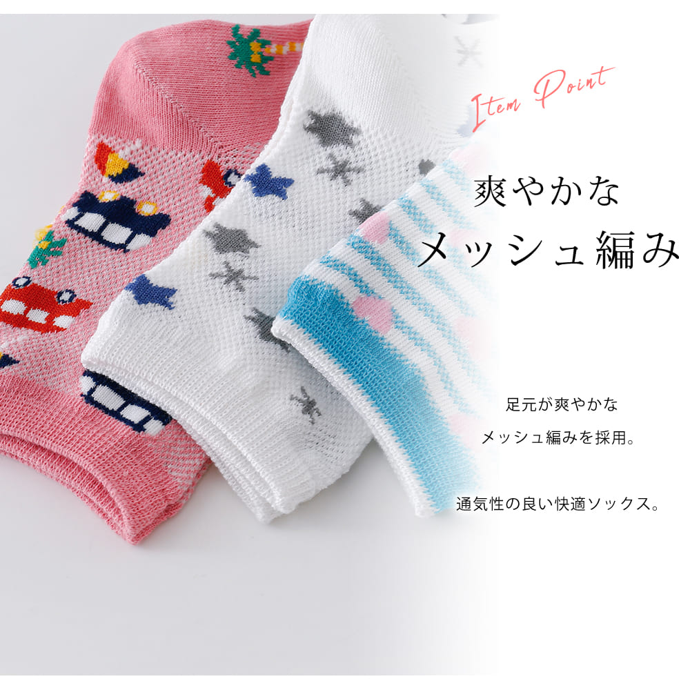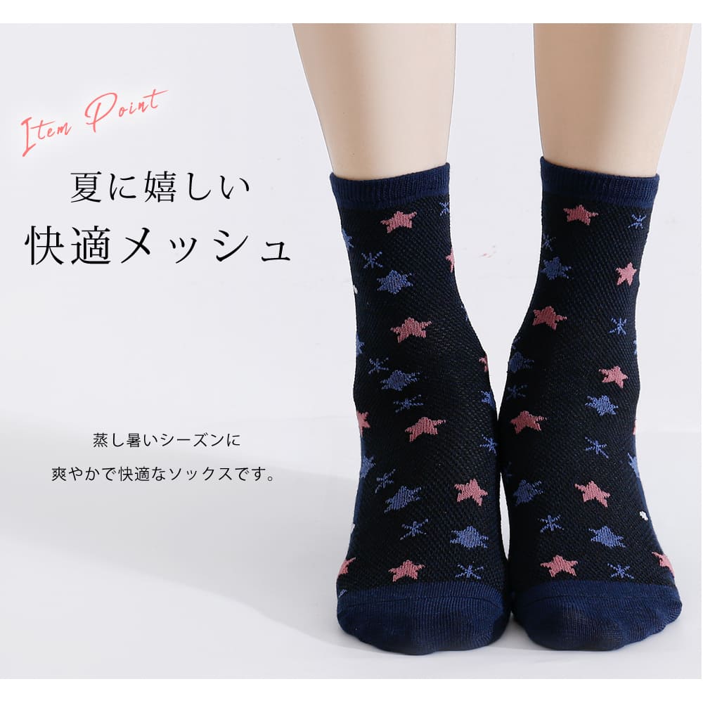 足元が爽やかなメッシュ編みを採用。通気性の良い快適ソックス。