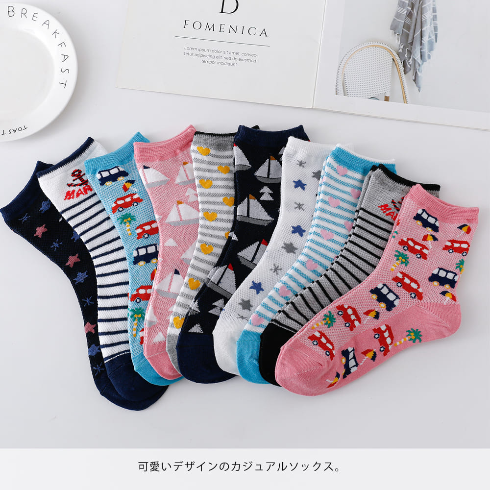 メッシュ編み 靴下 5足 セット 23cm〜25cm レディース クルーソックス ソックス アソートセット ミドル カジュアル 23 24 25 通年