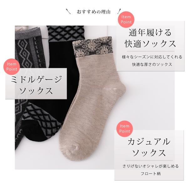 靴下 綿混 カジュアル 5足 セット 23cm〜25cm レディース クルーソックス もフロート柄 グレー 23 24 25 通年 送料無料