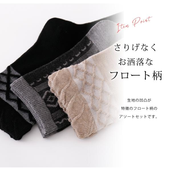 さりげないお洒落が楽しめるフロート柄ソックスのアソートセットです。