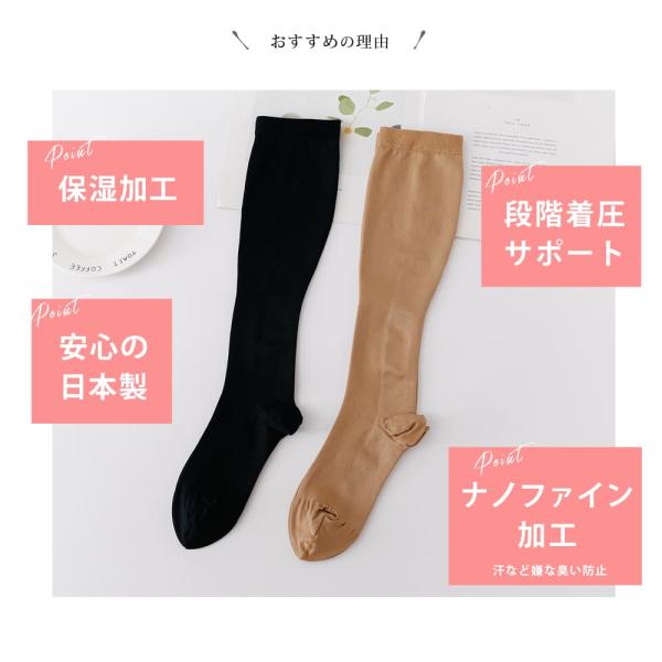着圧 ハイソックス ブラック ベージュ レディース 靴下 23cm〜25cm 黒 無地 着圧ソックス 美脚 23 24 25 通年 送料無料