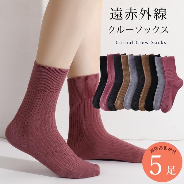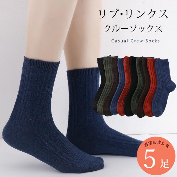 遠赤外線加工 あったか 靴下 5足 セット 22cm〜24cm レディース ソックス リブ リンクス 黒 ブラック 暖か 22 23 24 ベーシック 秋冬