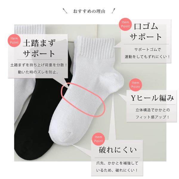 土踏まずと口ゴム部サポート入りでフィット感抜群。スクール用のソックスに最適です。