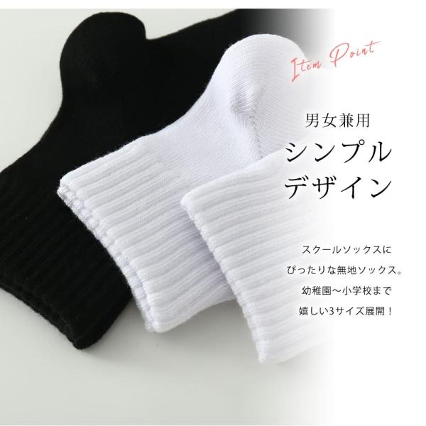 靴下 キッズ ソックス 3足 セット ロークルー丈 子供 スクールソックス 無地 白 黒 通学 通園 幼稚園 小学校 綿混 13cm〜21cm 通年 送料無料