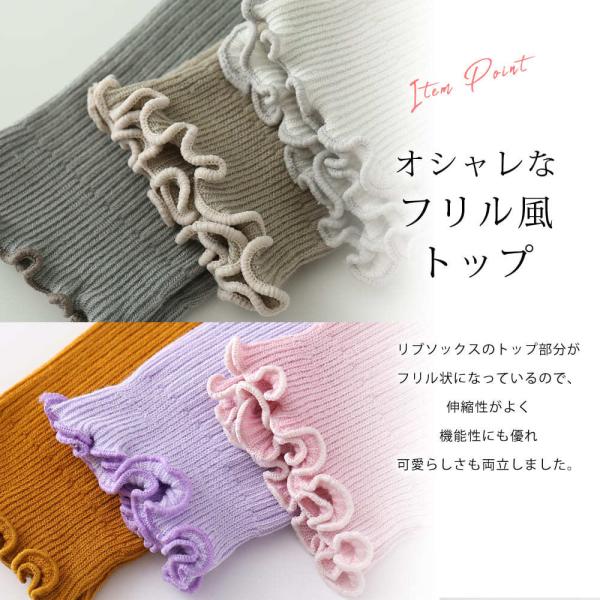 リブソックスのトップ部分がフリル状になっているので、伸縮性がよく機能性にも優れ可愛らしさも両立しました。