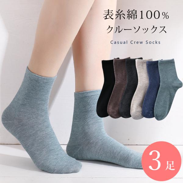 綿 クルーソックス 靴下 3足 セット レディース 23cm〜25cm 無地 カジュアル 23 24 25 通年 送料無料