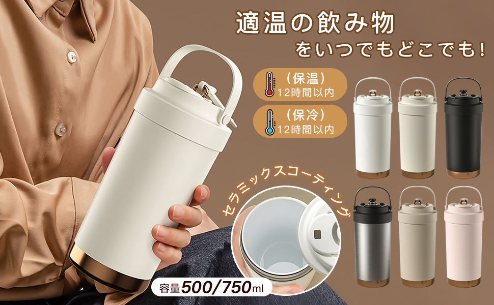 タンブラー セラミックタンブラー 500ml 750ml ウォーターボトル 大容量 保温 保冷 蓋付き 直飲み 伸縮ストロー 無臭 安全 漏れ防止 おしゃれ 持ち運び