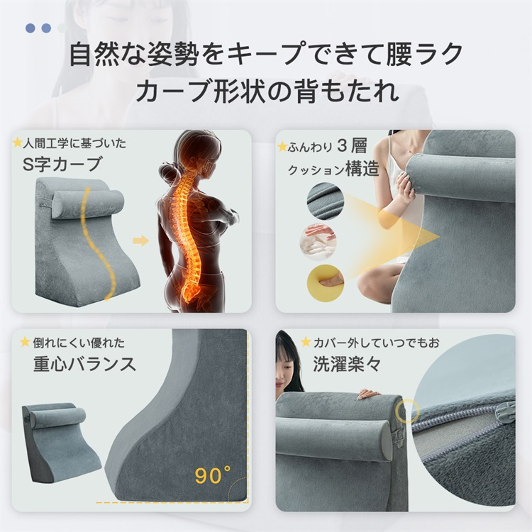 背もたれ クッション 大きい ベッド用 腰枕 寝具 人間工学 読書 テレビ 腰痛対策 自宅 一人用 北欧 無地 疲れない おしゃれ