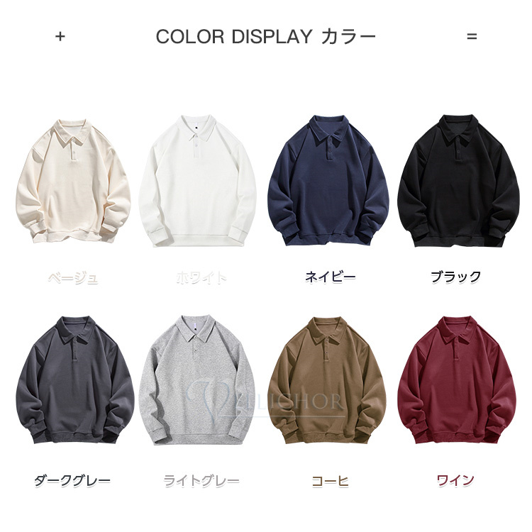 ポロシャツ トップス アウターウェア 内装 長袖 男女兼用 大きいサイズ 無地 秋冬 スポーツ カジュアル ファッション 学生服 送料無料