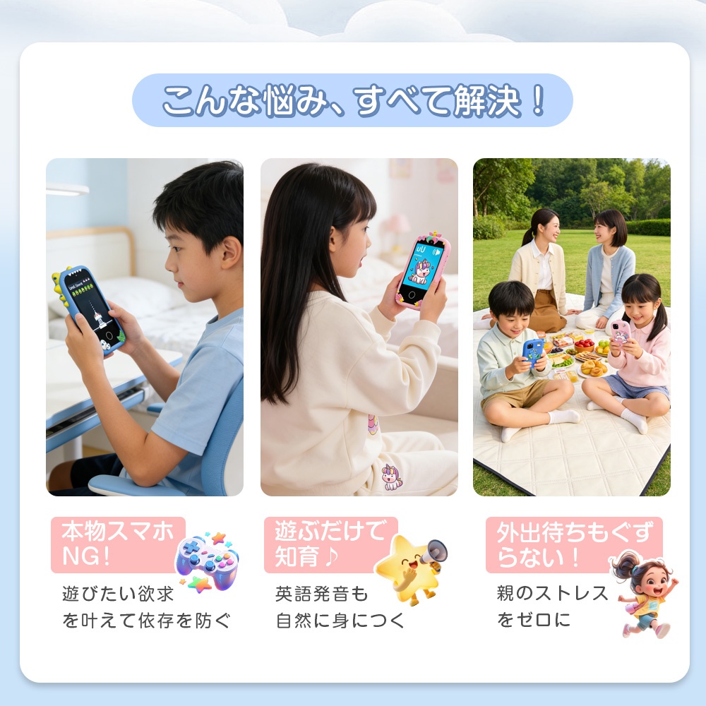 キッズスマホ キッズカメラ 子供用 スマートフォン スマホ 子ども用 知育おもちゃ 写真撮影 アラーム 動画 音楽 英語学習 知育ゲーム 30万画素 ギフト