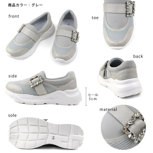 【送料無料 】25SS 春夏新作 ビジュー スニーカー 厚底 ボリュームソール やわらか 痛くない 幅広 5.0cmヒール 歩きやすい